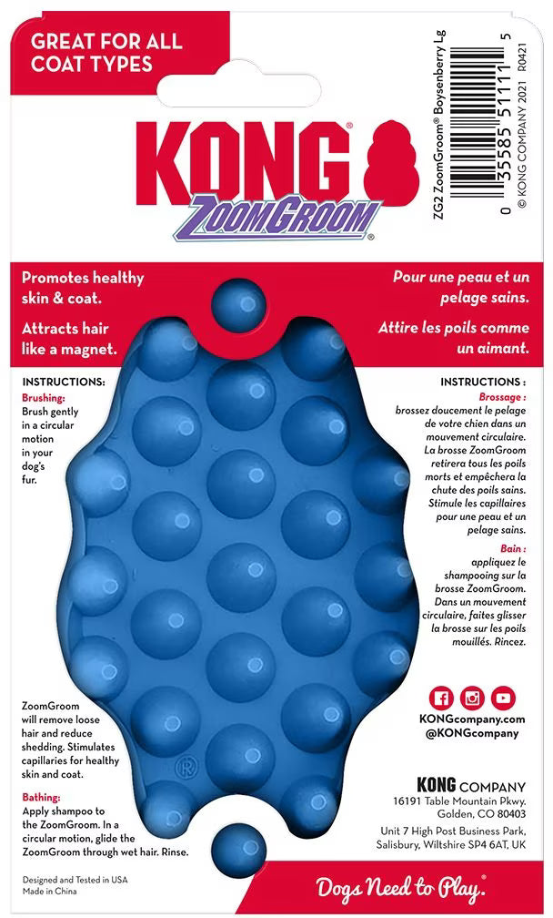 Treat your furbaby to a bath time massage with the KONG Dog ZoomGroom Multi-Use Brush. This brush makes it easier to get your dog clean while feeling great, too. While you shampoo your pup, use this grooming brush to clean the coat. The rubber fingers reach down through the coat, massaging the skin and stimulating the production of natural oils. This promotes a healthy, shiny coat so your pup will look and feel paw-some. You can use the brush dry, too, to help remove loose hair.